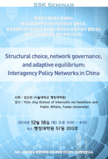 [동계 세미나] Structural choice, network governance, and adaptive equilibrium: Interagency Policy Networks in China (2014.12)
