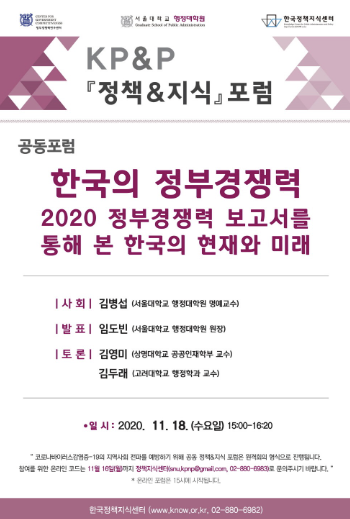 [정책&지식 포럼] 한국의 정부경쟁력 2020 정부경쟁력 보고서를 통해 본 한국의 현재와 미래 (2020.11)