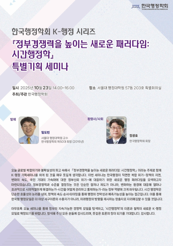 Special Seminar: 정부경쟁력을 높이는 새로운 패러다임: 시간행정학 (2025.10)